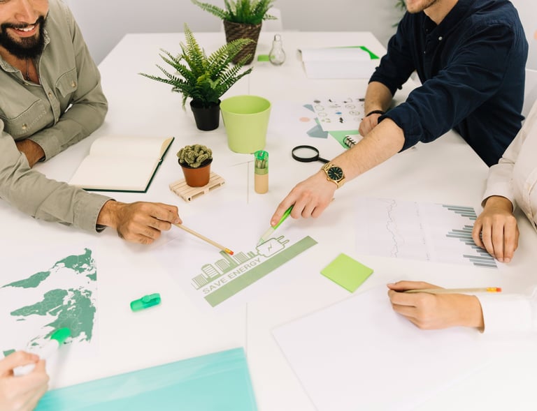 A presentation outlining digital tools and consulting solutions designed to support sustainability reporting, compliance, and operational performance.